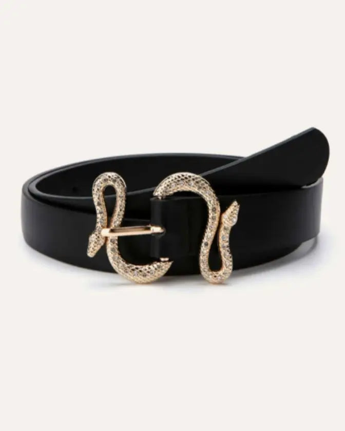 A unique snake buckle fashion leather belt that makes you indulge in a piece of quality and modern design.