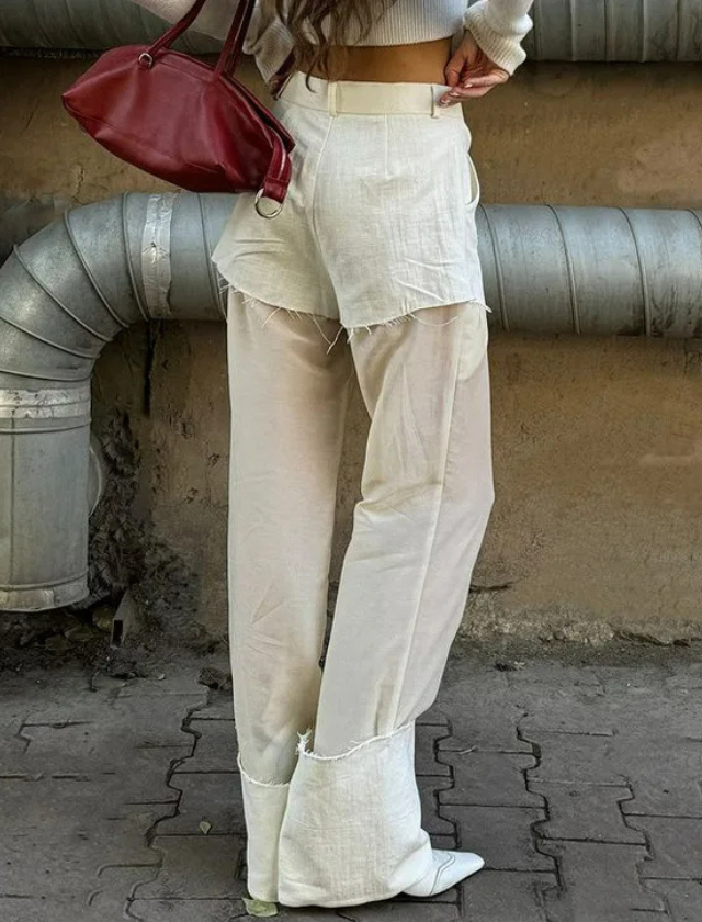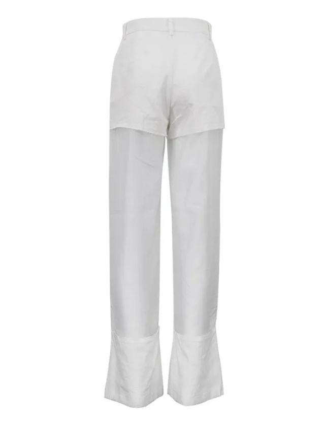 Make a bold statement with these Splicing Design See-Through Wide Leg Pants. Featuring a chic contrast panel design and sheer mesh elements, these high-waisted pants combine edgy street style with a touch of elegance. The wide-leg silhouette flatters all body types while offering flow and movement, perfect for turning heads wherever you go.