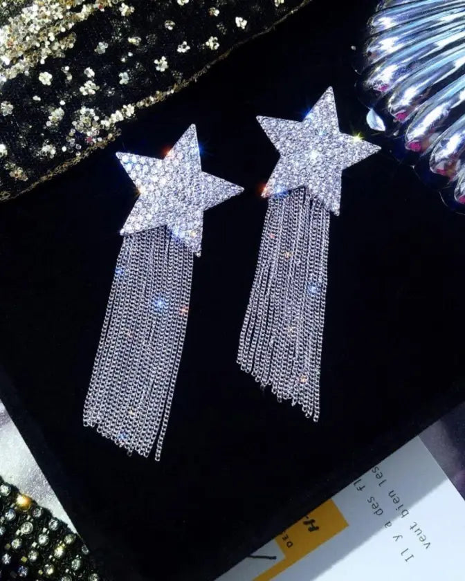 Create a killer look head to toe with our star studded fringed trendy earrings.