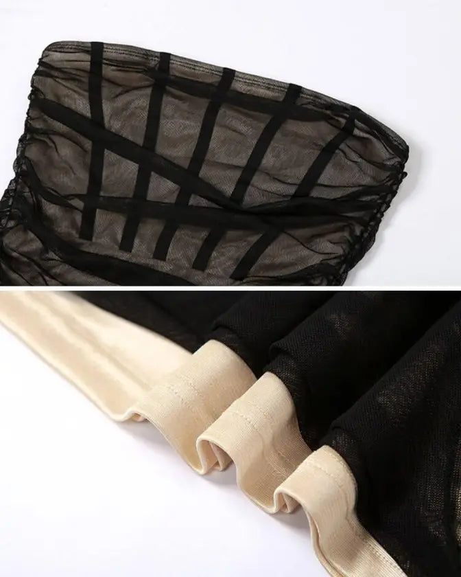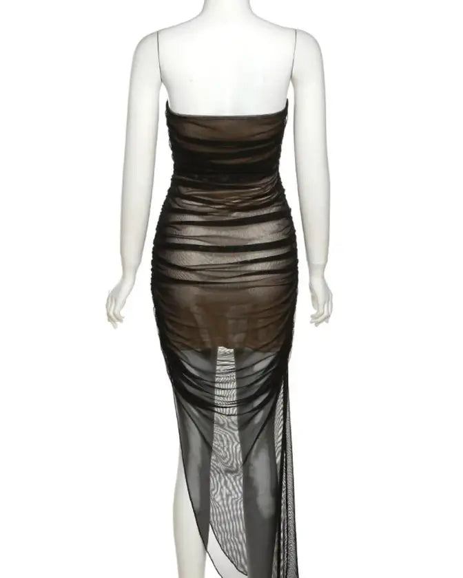 This strapless bodycon mesh patchwork black midi dress will catch his attention and there is every reason for that! The fitted style and contrast mesh patchwork make this dress the perfect mix of sweet and sexy. The comfortable midi length ensures you can move and groove in confidence.
