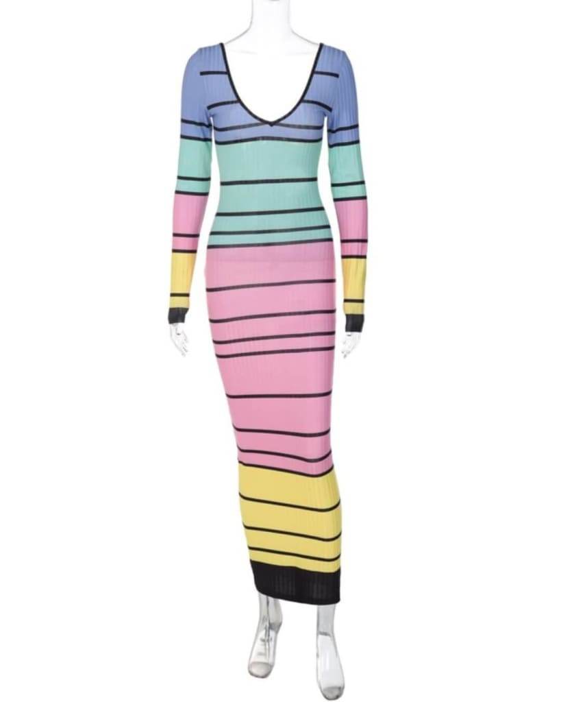 Hey there, gorgeous! Looking for the perfect dress to make a statement? Look no further than our fabulous Striped Long Sleeve V-Neck Dress! This dress is a total showstopper, featuring a sleek bodycon fit that hugs your curves in all the right places. The long sleeve design makes it perfect for transitioning from day to night, while the chic V-neck adds an extra touch of sophistication.