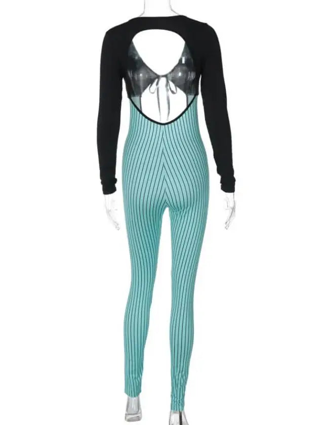 Unleash your inner fashionista with our Striped Print Hollow Out Backless Jumpsuit! The perfect combination of style and comfort, this jumpsuit features a trendy striped print and a backless design that will make heads turn. Show off your confident and unique style with this must-have piece!