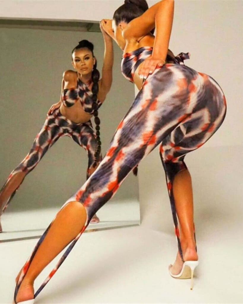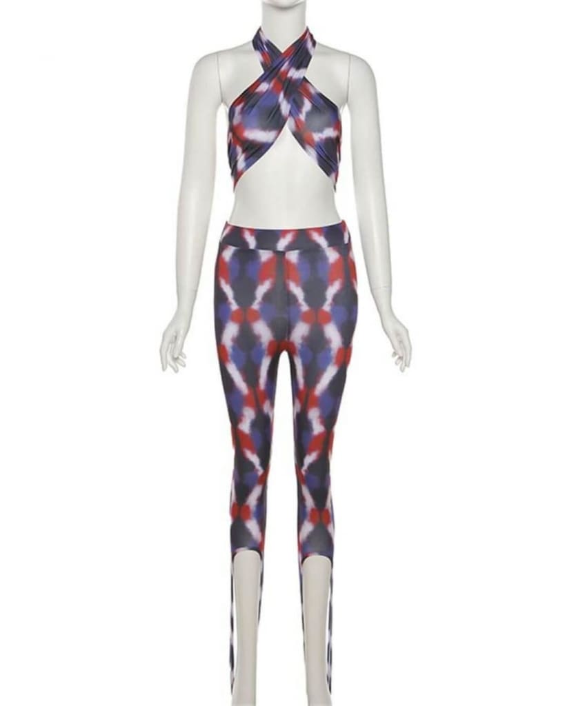 Make a style statement with ultra-chic summer cross bandage halter top + hook legs pant two piece set. Perfect to wear during the day or in the evening.