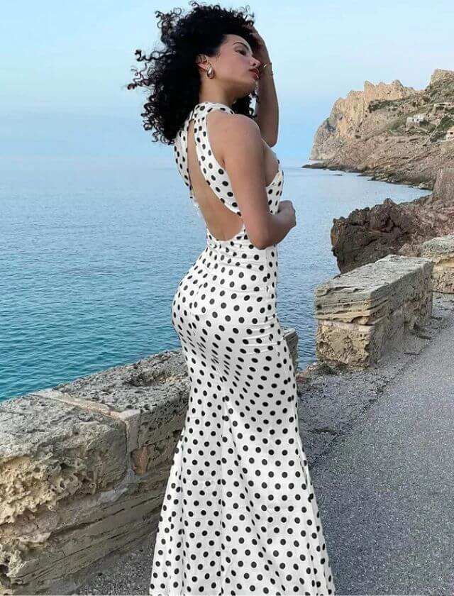 So, what are you waiting for? Slip into the Summer Fashion Dots Print Backless Dress and let the compliments roll in.