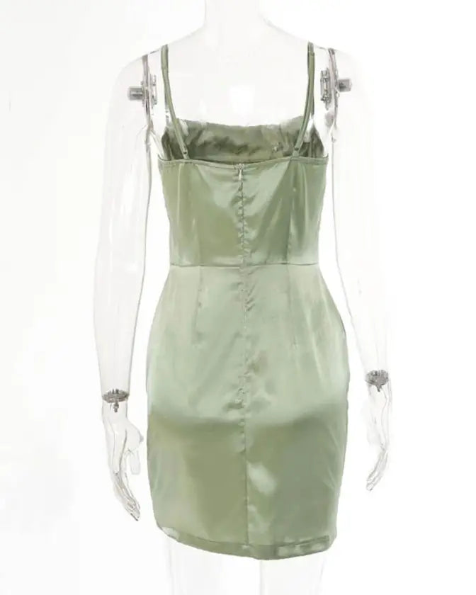 Flaunt this fashion and elegant satin green midi dress for upcoming events and look effortlessly stylish wherever you go.