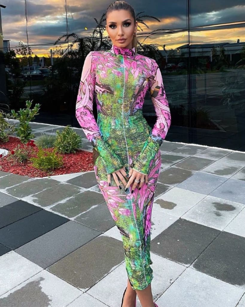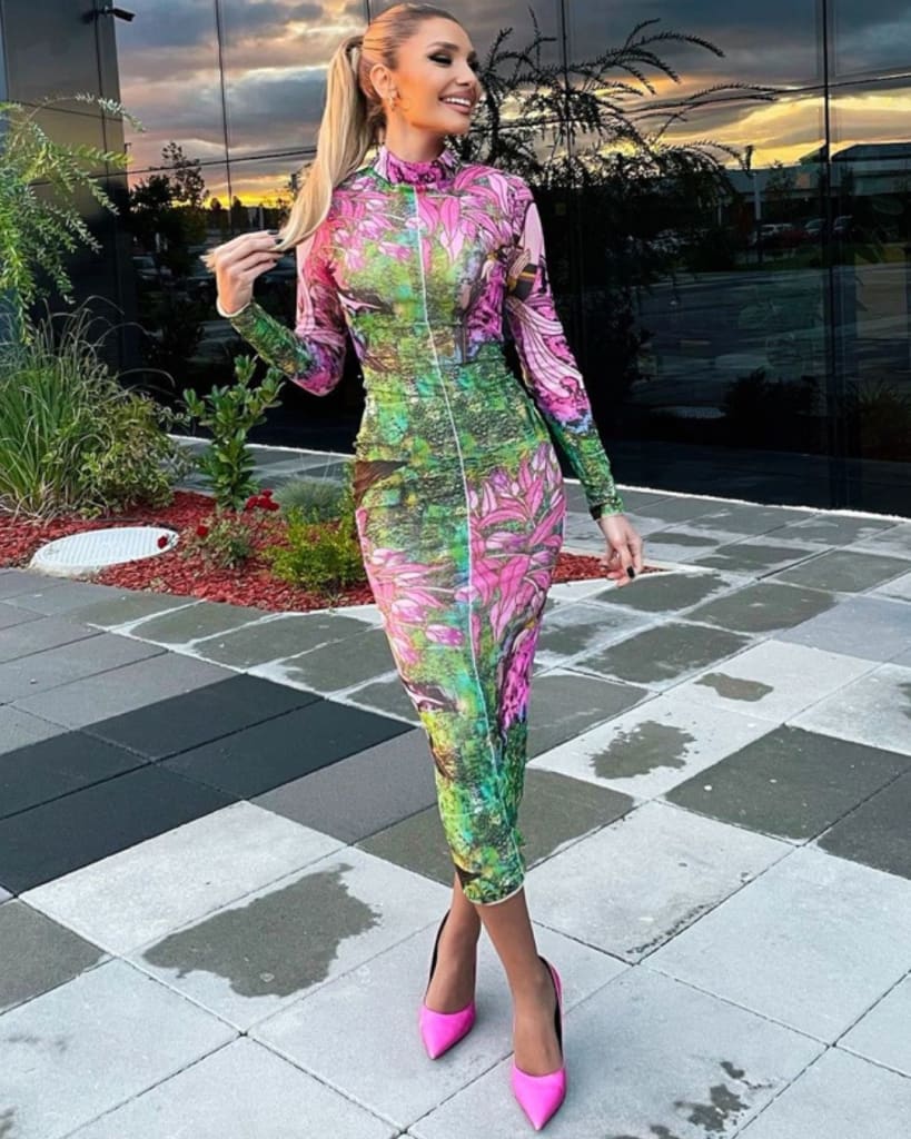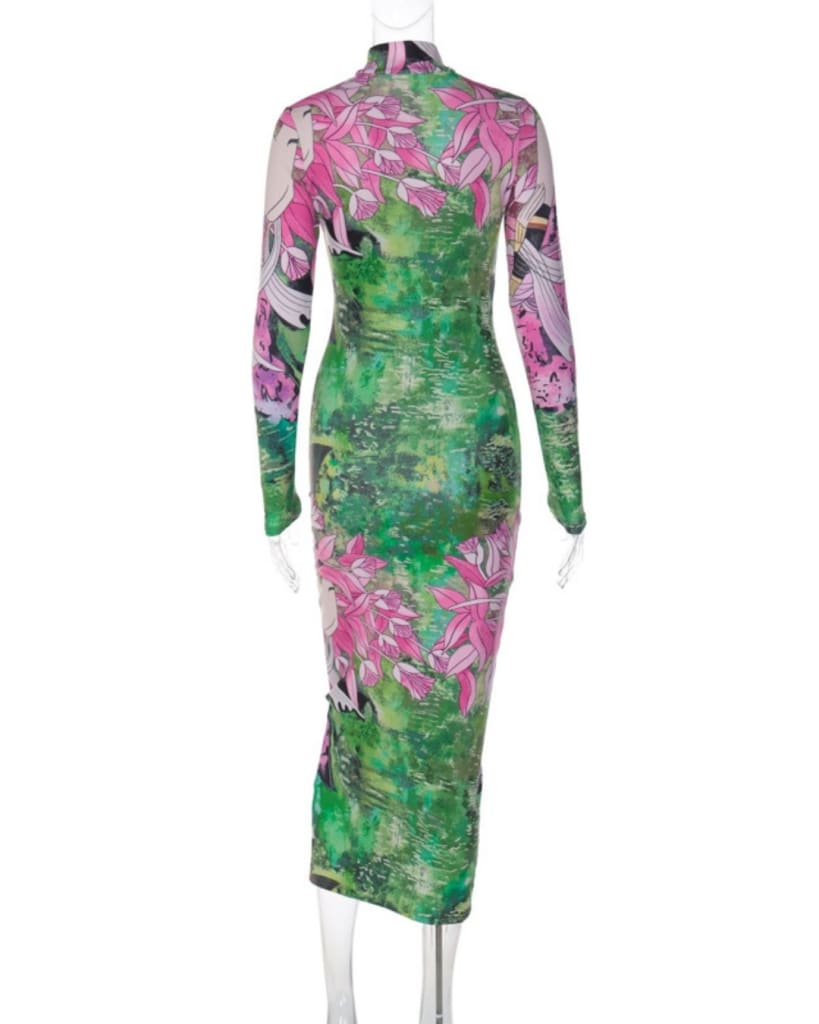 This Tie Dye Floral Print Stretch Long Sleeve Maxi Dress offers a unique look and feel. It is made of stretchable fabric and features a beautiful tie dye floral print along with a comfortable, long-sleeved cut. Perfect for any occasion.