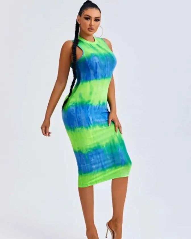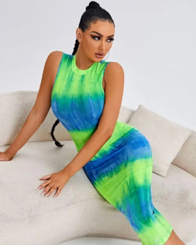 Trying to figure out what to wear to your party? Our elegant tie dye sleeveless o-neck midi maxi dress outfit will be your perfect choice!