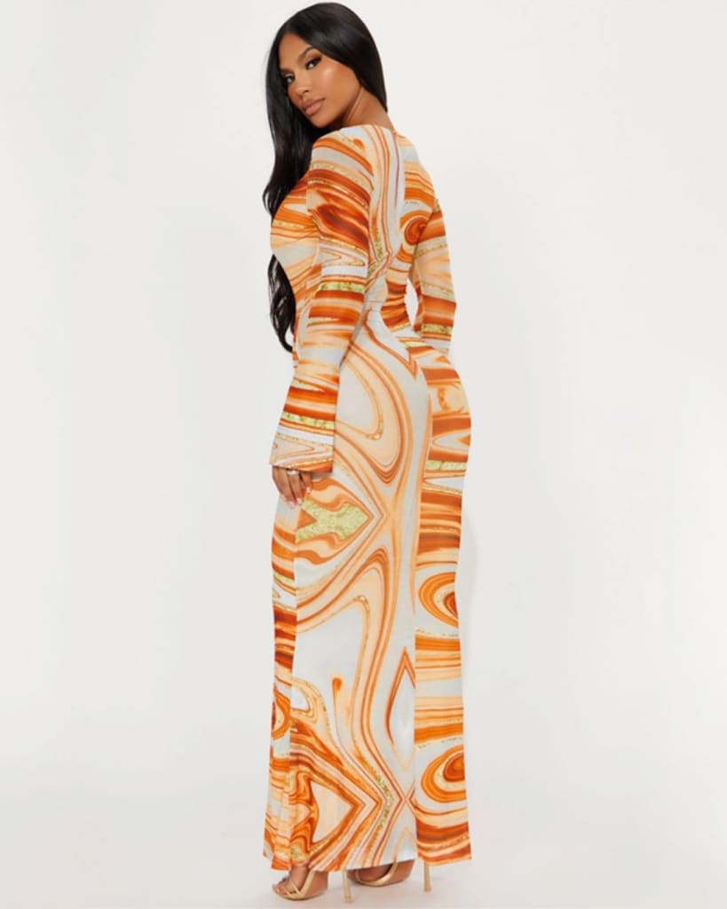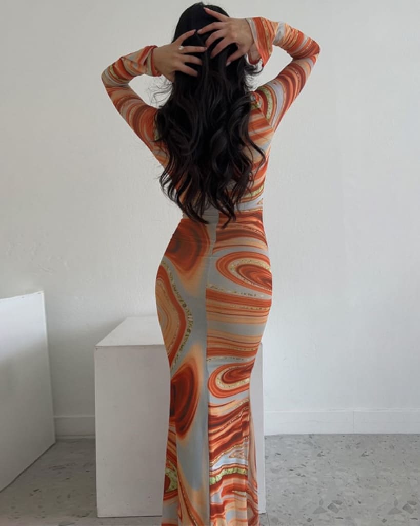 This Tie Dye Print Deep V Round Ring Long Sleeve Dress is perfect for any occasion. Made with a deep V-neck and round ring detail, this dress is stylish and comfortable. The long sleeve design and tie dye print make for a fashionable and flattering look that will have you feeling confident.