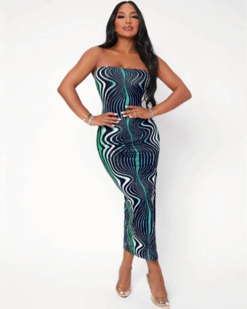 Bring on the standout style with our tie dye print bodycon split midi dress. All in one that go from daytime to dinner. It is stretchy and elegant.