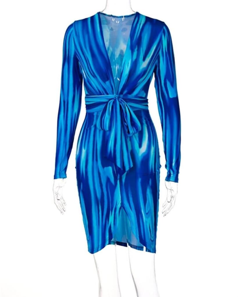 Bring on the standout style with our elegant bodycon long sleeve tie dye maxi dress. All in one that go from daytime to dinner. Featuring a unique color and stretchy material that hugs your curves.
