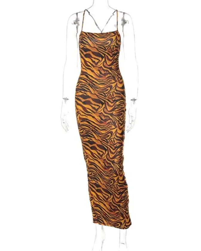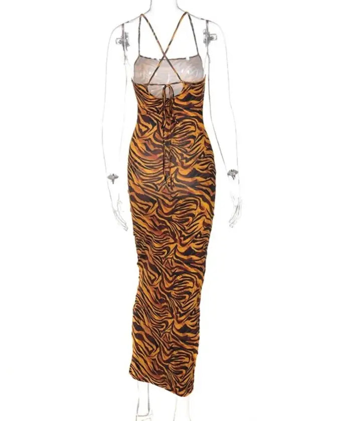 Roaring with Confidence: Embrace your adventurous and confident spirit with this bold and daring dress. The tiger pattern print exudes power and strength, giving you the confidence to take on any challenge with style and grace.