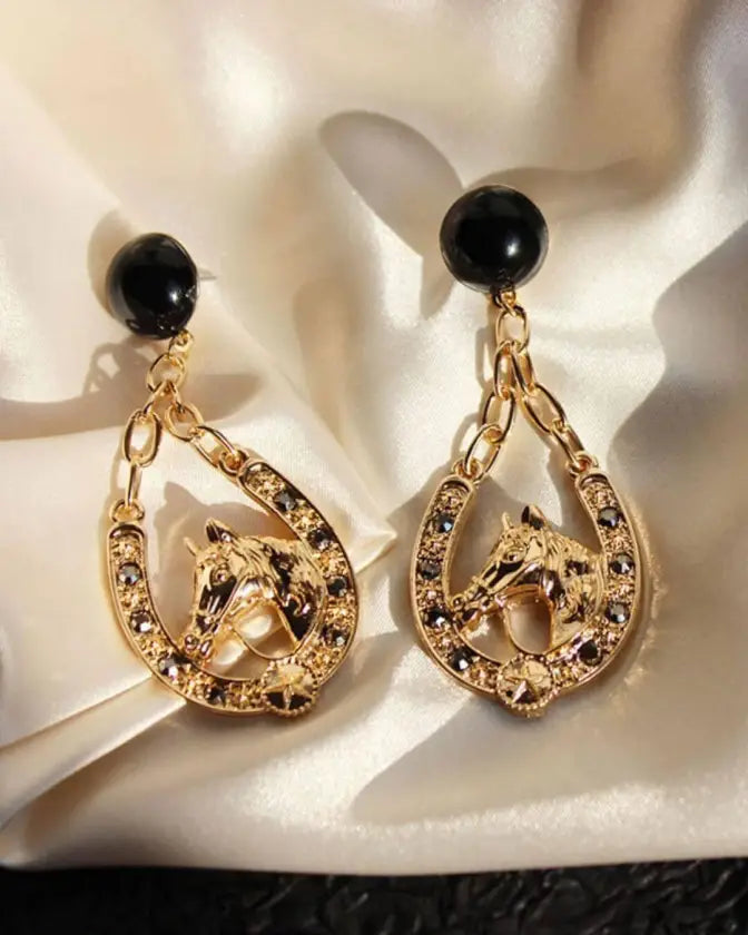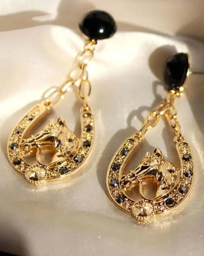 Add an effortlessly chic vibe to your look this season with our newest fashion trendy horse drop earrings.