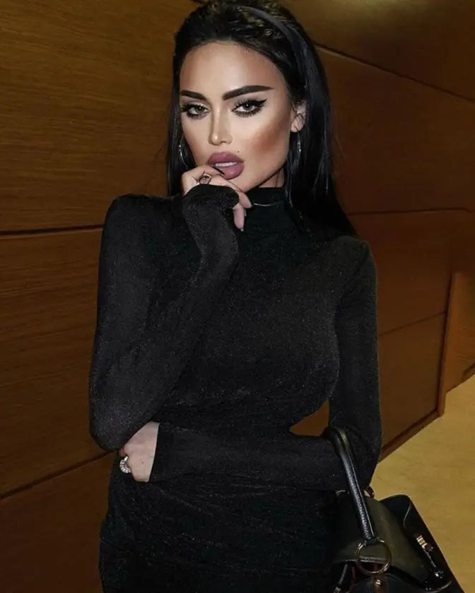 This turtleneck hollow out ruched midi dress will catch his attention and there is every reason for that. It is stretchy and classy.