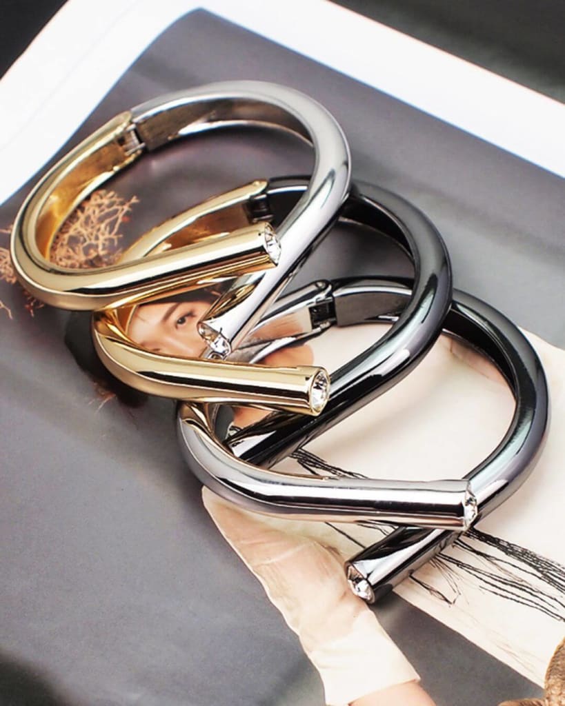 Step up your look with this Unique Alloy Geometric Bangle Bracelet! Featuring a statement-making Rhinestone design, this exquisite bracelet adds a daring edge to any outfit. Show the world that you’re not afraid to take risks and take your style to the next level!