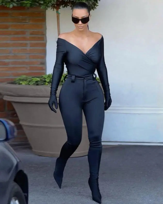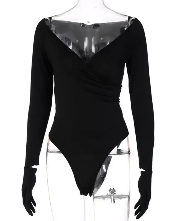 Make a wow-worthy statement in our elegant v-neck pleated long sleeve with gloves black. Perfect to wear during the day or in the evening. It is stretchy and elegant.