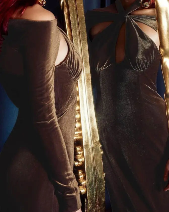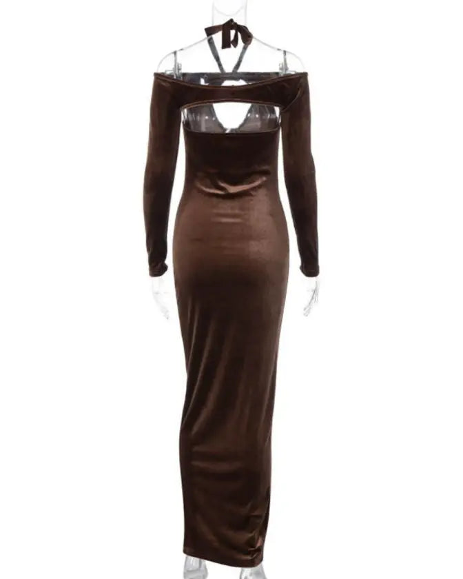 This winter, step out in style with the Velvet Halter Hollow Out Maxi Dress, and let everyone know you’re the fashion queen of the season.