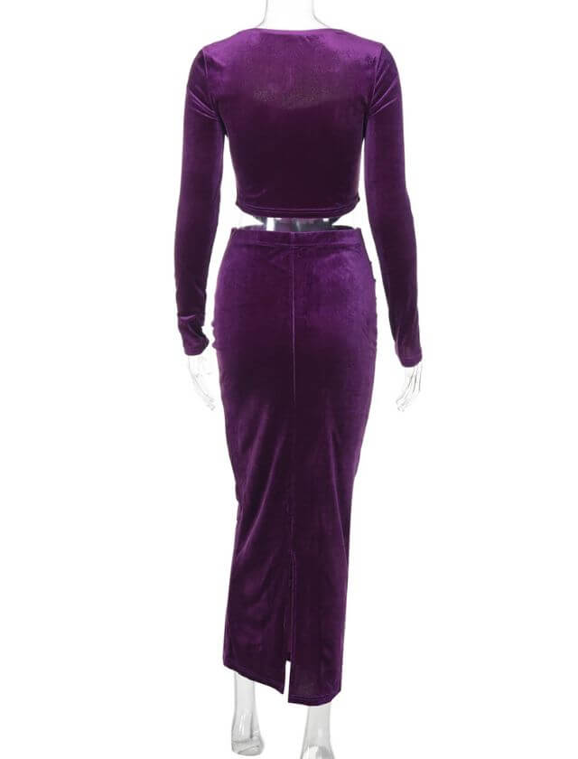 Featuring a v-neck corset top with long sleeves and a matching skirt, this set is perfect for any winter party or special occasion. The luxurious velvet material adds a touch of elegance, while the stretch fabric ensures a comfortable and flattering fit.