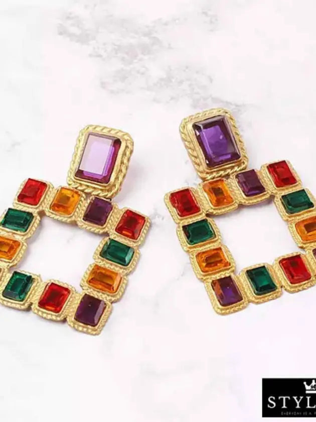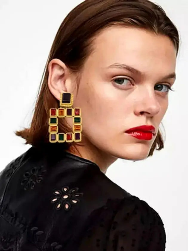 Enhance your look with a pair of vintage crystal geometric dangle earrings.
