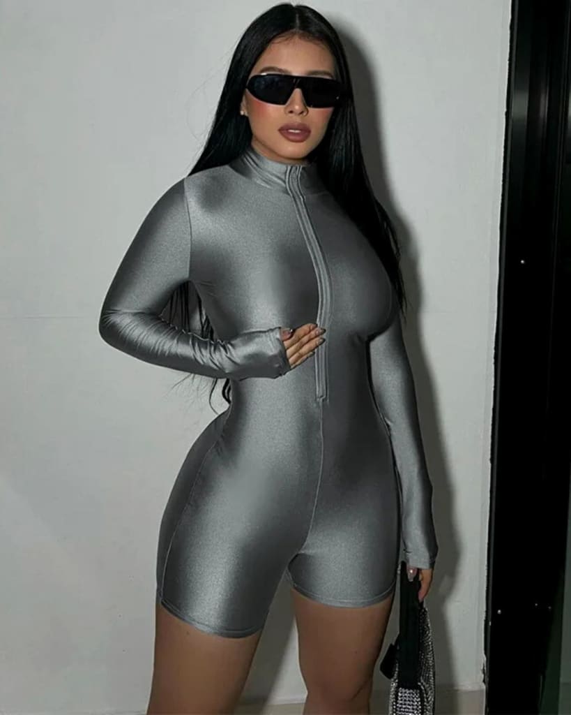 Look sharp and stylish in this Zipper Slim Fit Long Sleeve Romper Jumpsuit. This chic jumpsuit features a slim-fit silhouette, zipper closure, and long sleeves for a sleek and classy look. Beautiful and timeless, show off your fashion-forward style with this stunning piece. Who said comfort can’t be fashionable?